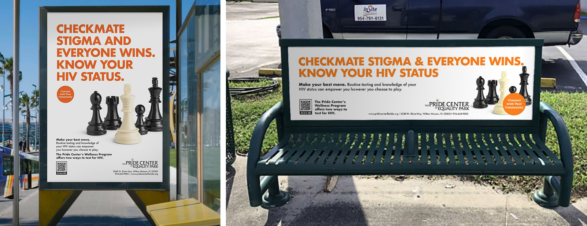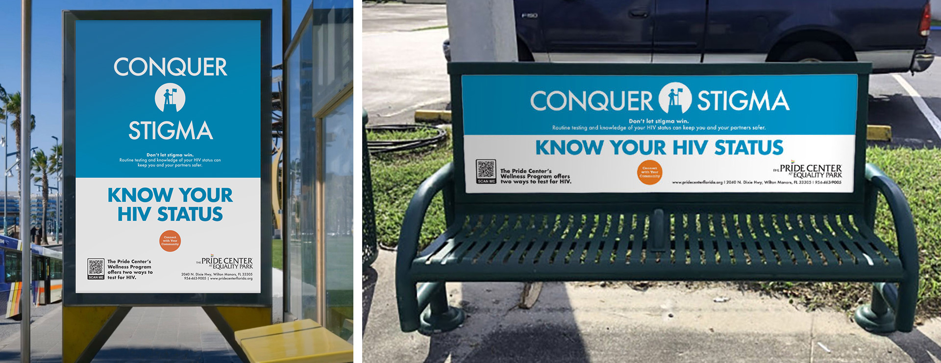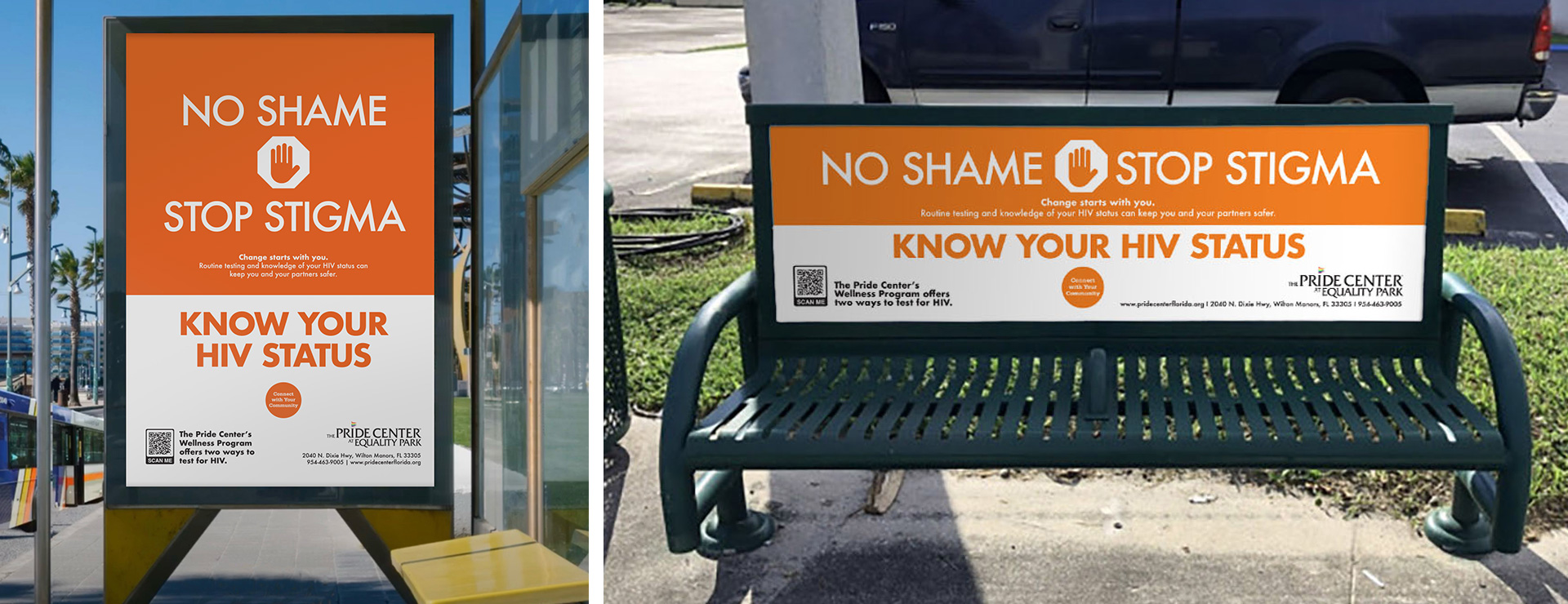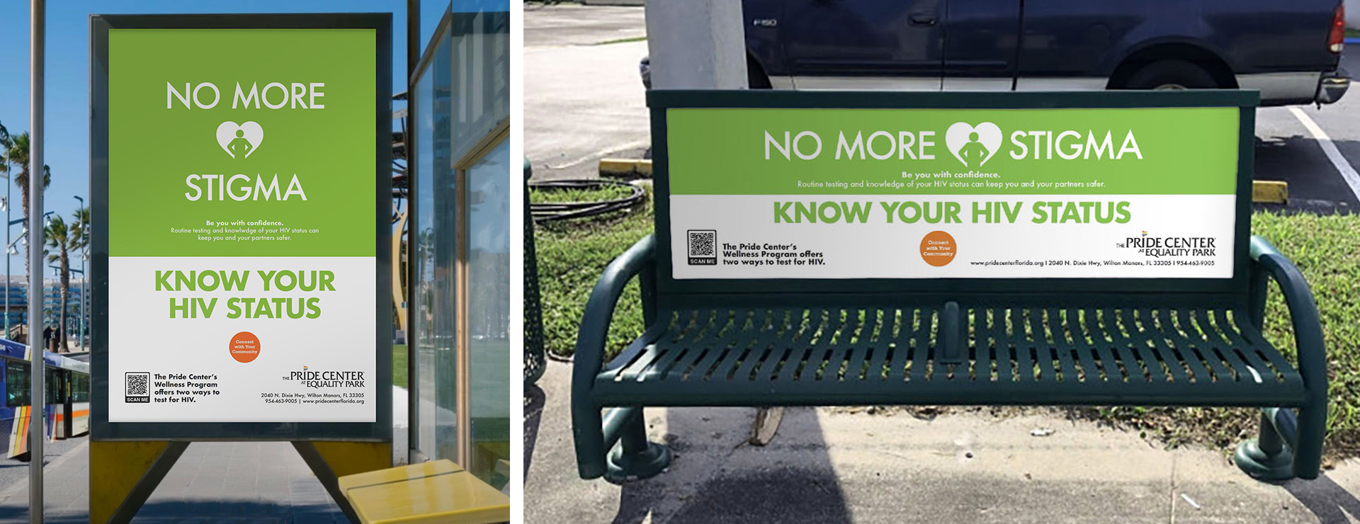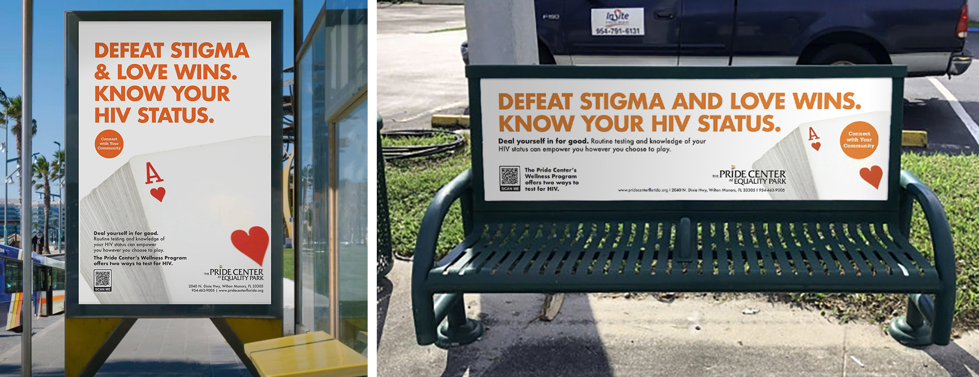 Graphic Ardt & Design, Inc. developed two separate campaigns for the Pride Center's use at bus stops and on benches throughout Wilton Manors, FL.
